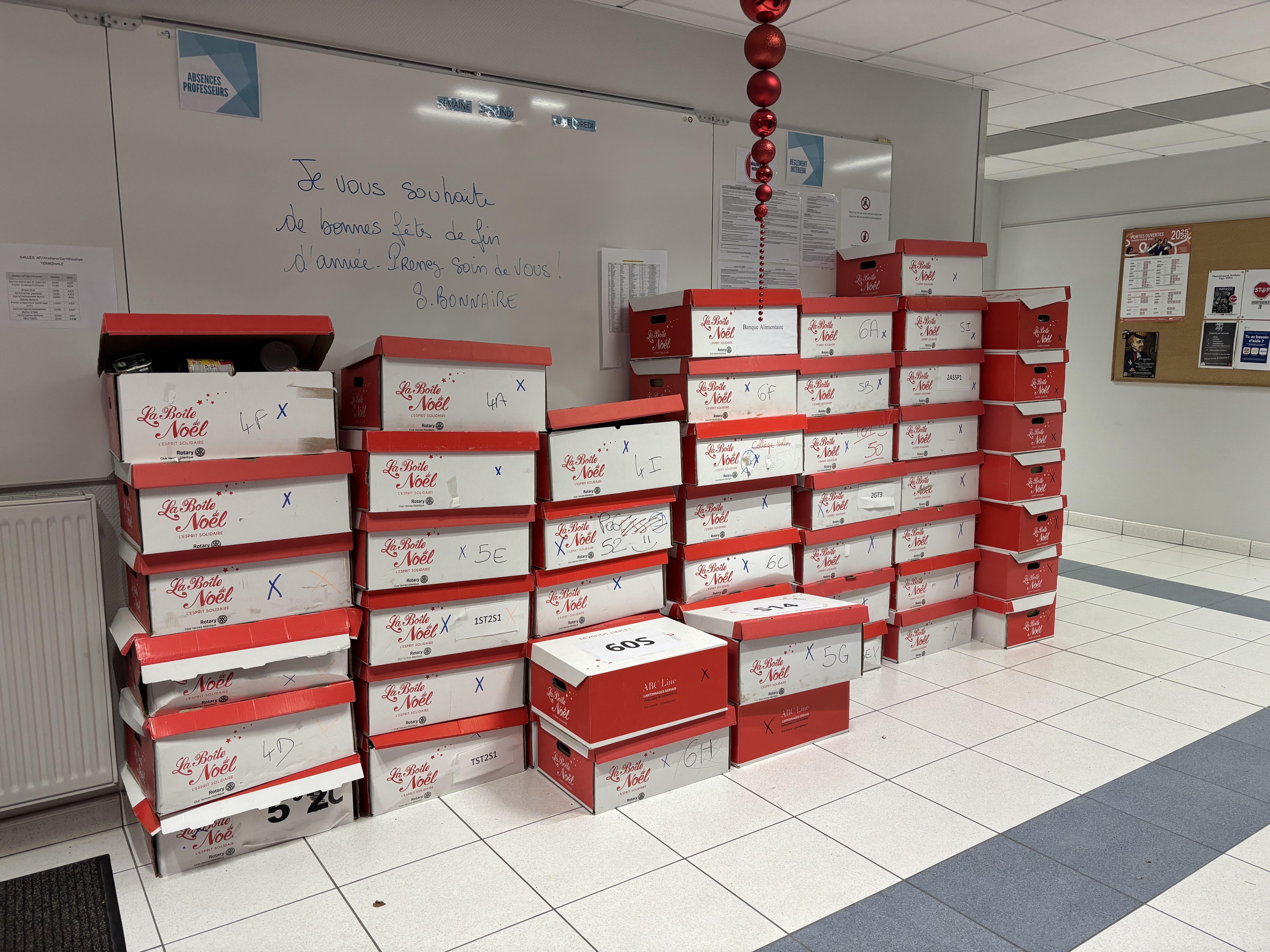 Ce vendredi 19 décembre, les bénévoles de la Banque Alimentaire sont venus récupérer les Boites de Noël que nos élèves avaient remplies durant 3 semaines. Une cinquantaine de boites ont été remplies.