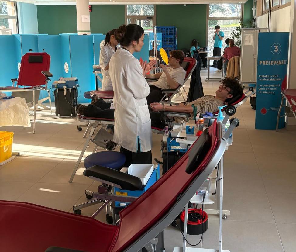 4 étudiants de SAM1 et 4 de SAM2 ont organisé une collecte de don de sang ce mardi 10 mars. Cet événement a permis de sensibiliser de nombreuses personnes à l’importance du don de sang, un geste simple qui peut sauver des vies. Pour cette deuxième édition de l’année scolaire, le don était principalement ouvert aux élèves de terminale majeurs pour leur premier don. Pour cette matinée 64 personnes se sont présentées pour 47 dons prélevés dont une grande partie de premiers dons qui en appelleront d’autres nous l’espérons.