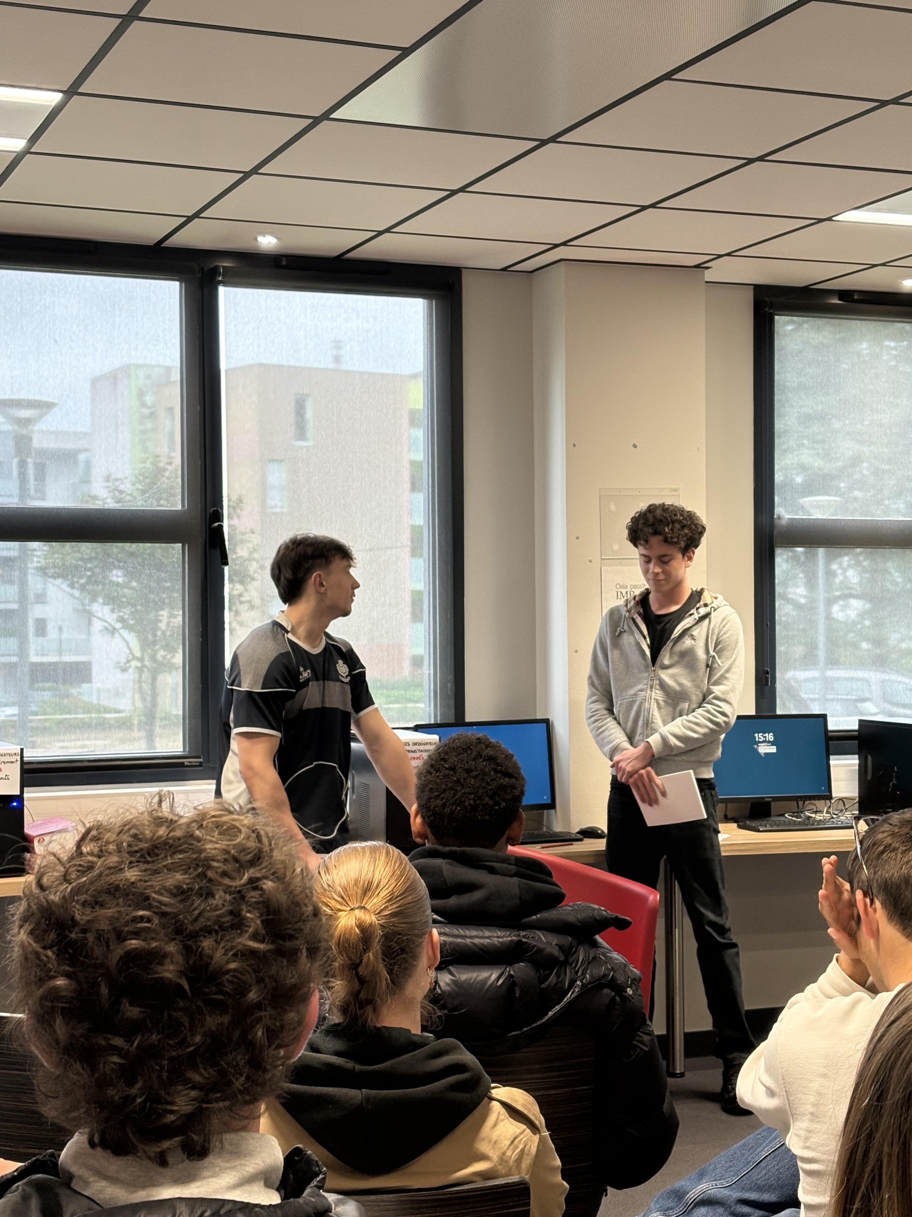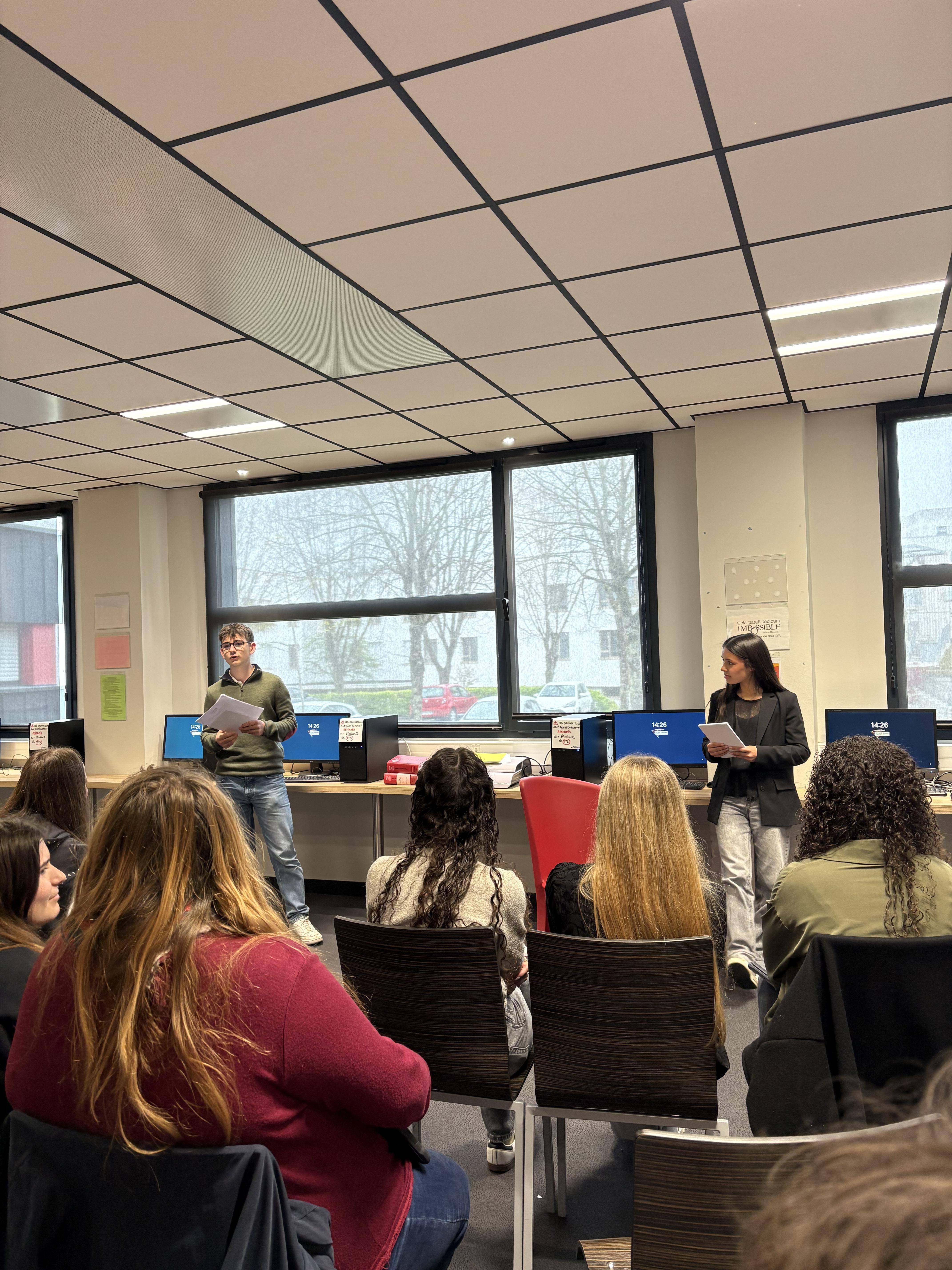 La séance s’est poursuivie par un cas pratique à résoudre en équipe, permettant aux élèves de se mettre dans la peau de véritables professionnels. Chaque classe a ensuite désigné un représentant pour restituer son analyse, illustrant la qualité du travail collectif et l’engagement des participants.