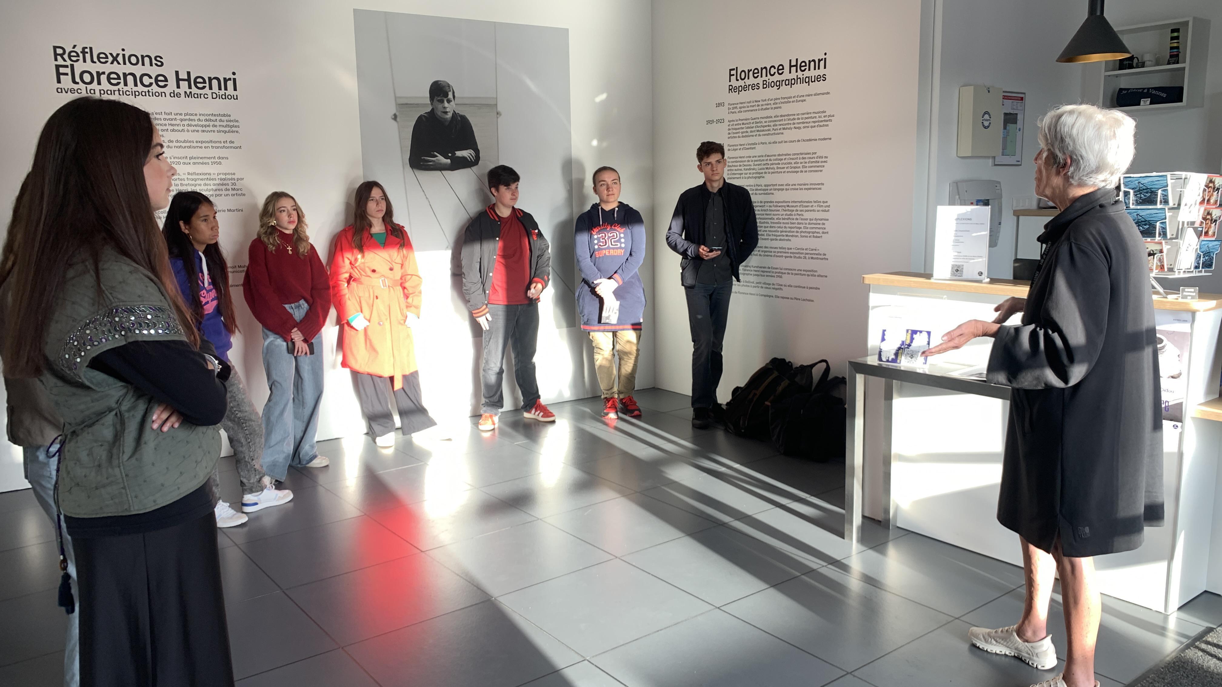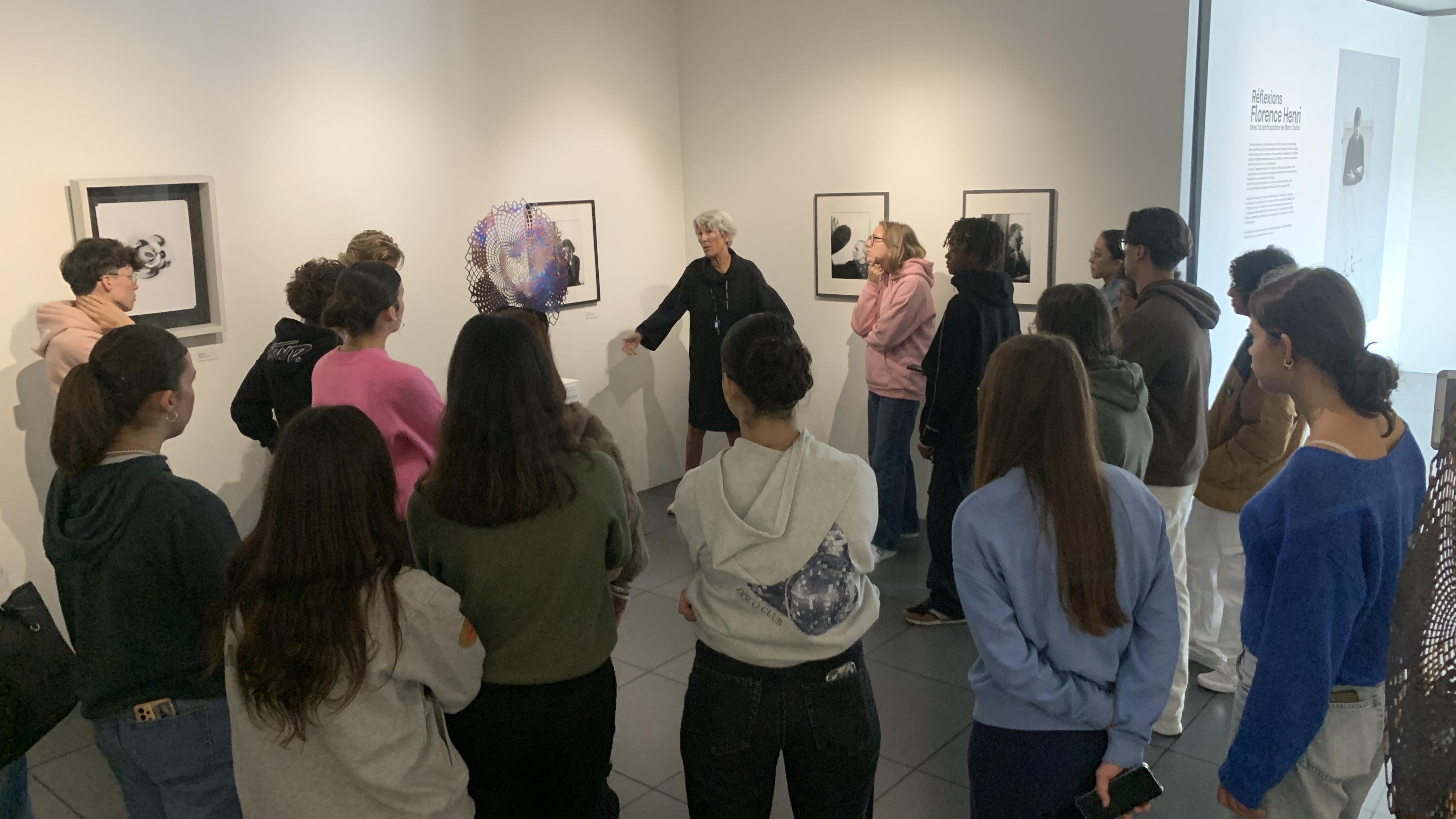 Après le visionnage d’un extrait de LA JETÉE, ciné-roman de Chris Marker sortie en 1962 et la visite de l’exposition au Kiosque qui proposait une rencontre entre deux artistes séparés par le temps, mais unis par une même fascination pour la construction de l’image. Figure incontournable des avant-gardes du XXe siècle, Florence Henri a su imposer un regard novateur grâce à ses expérimentations photographiques mêlant jeux de miroirs, mises en scène et ruptures de perspectives. Marc Didou a prolongé cet héritage en explorant, par la sculpture, de nouvelles façons de fragmenter, recomposer et réinterpréter l’image. En dialogue avec l’œuvre singulière de Florence Henri, il proposait une relecture contemporaine de la déconstruction visuelle, entre mémoire et innovation.