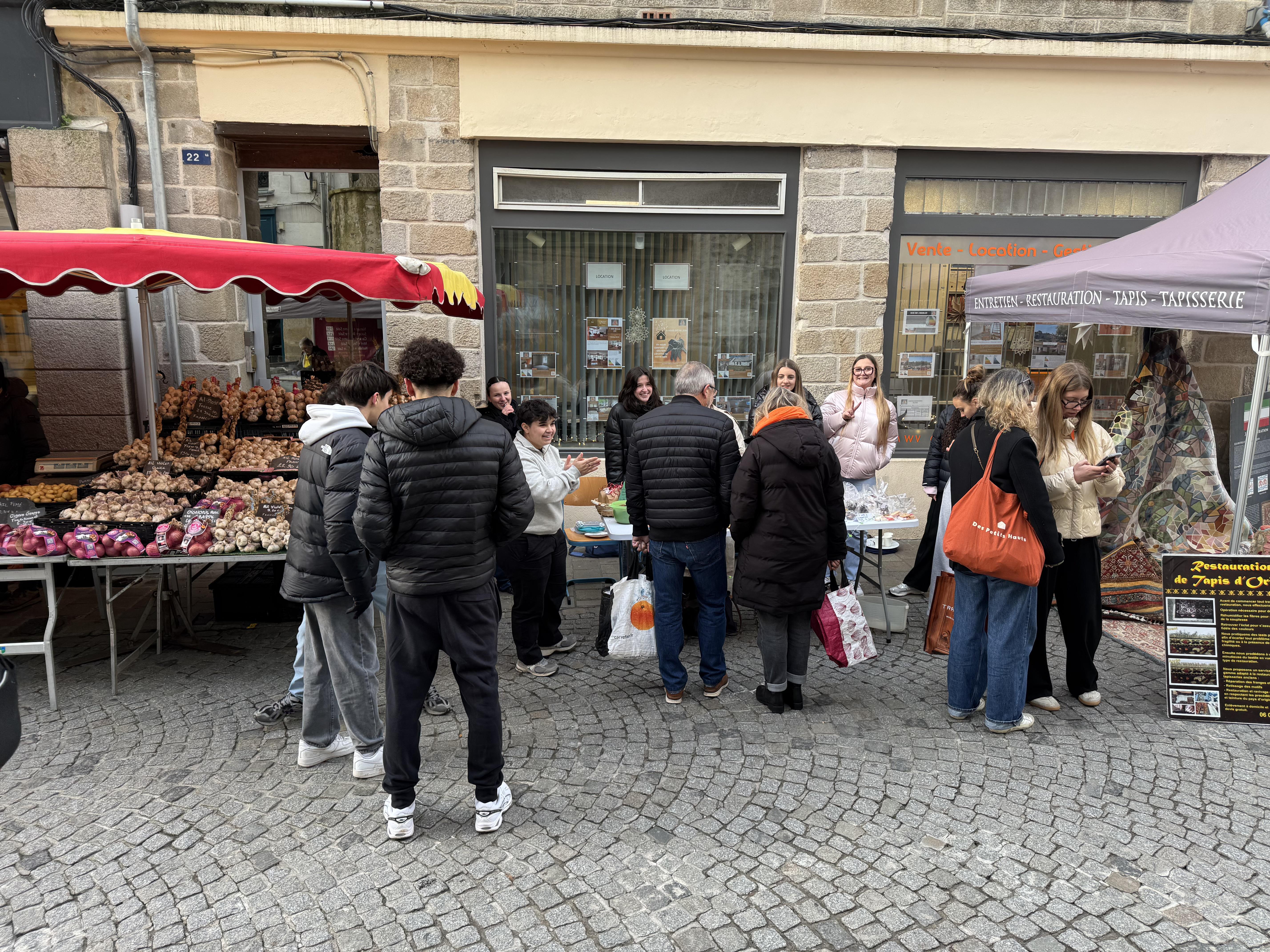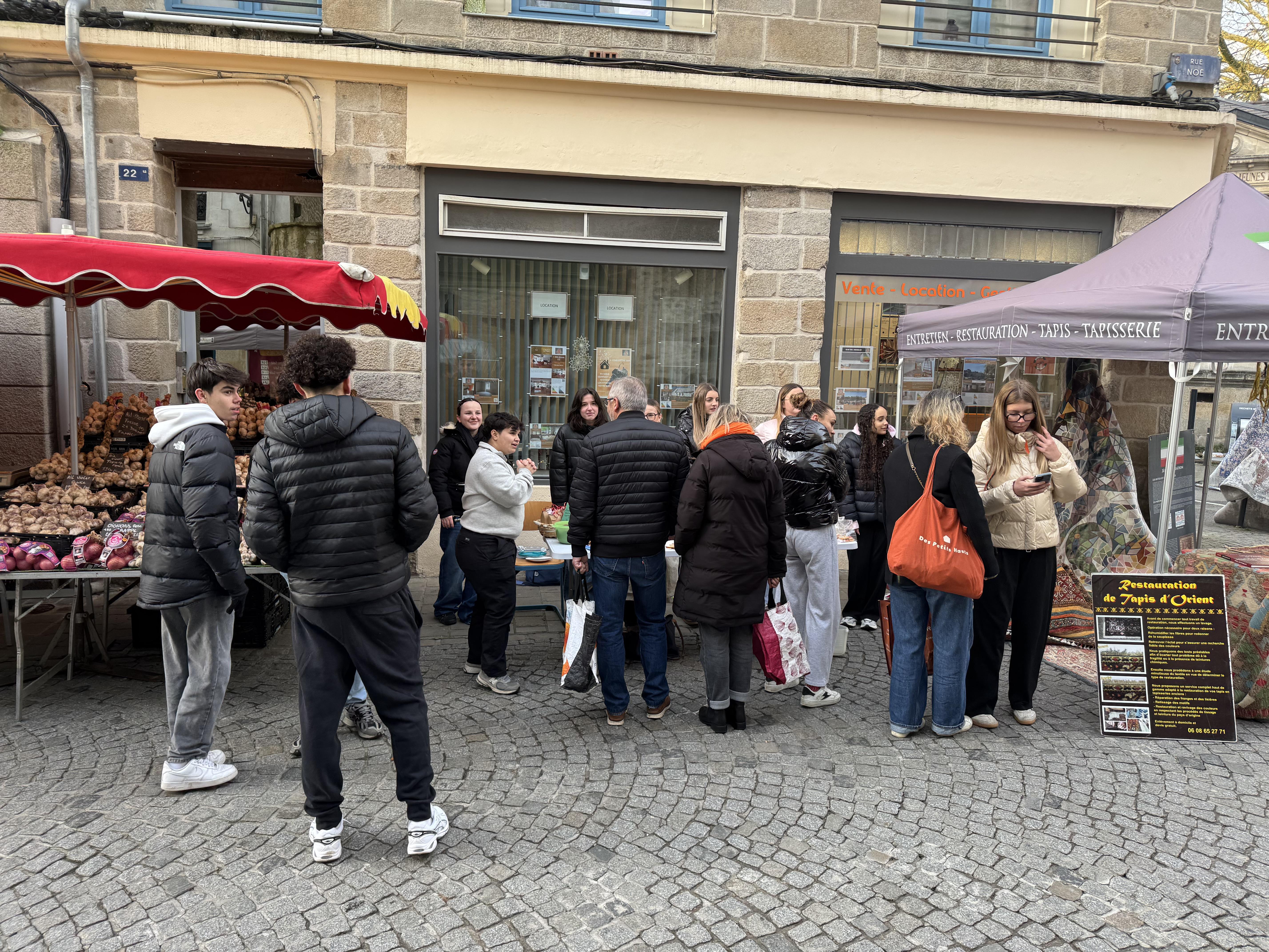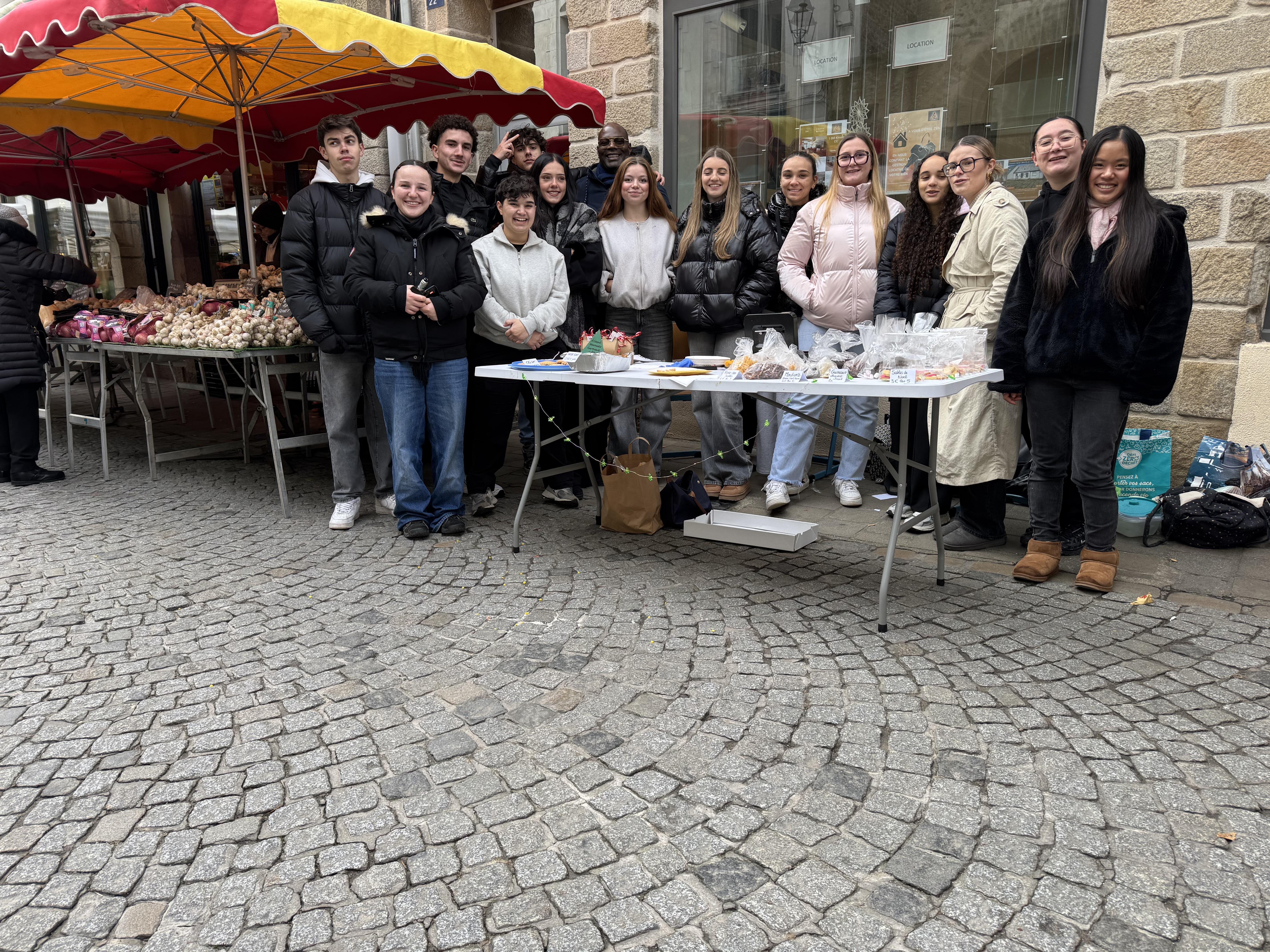 Le mercredi 17 décembre 2025, la classe de Terminale Métiers de l'accueil (TMDA) a tenu un stand au marché de Vannes à l’occasion d’une vente de chocolats.