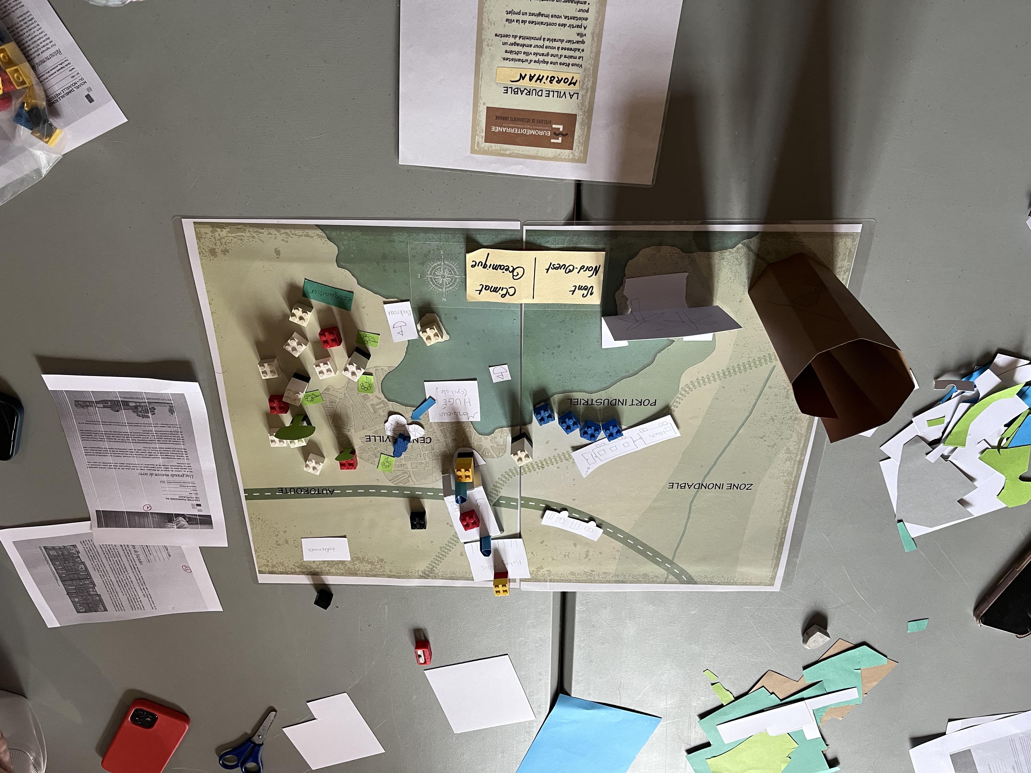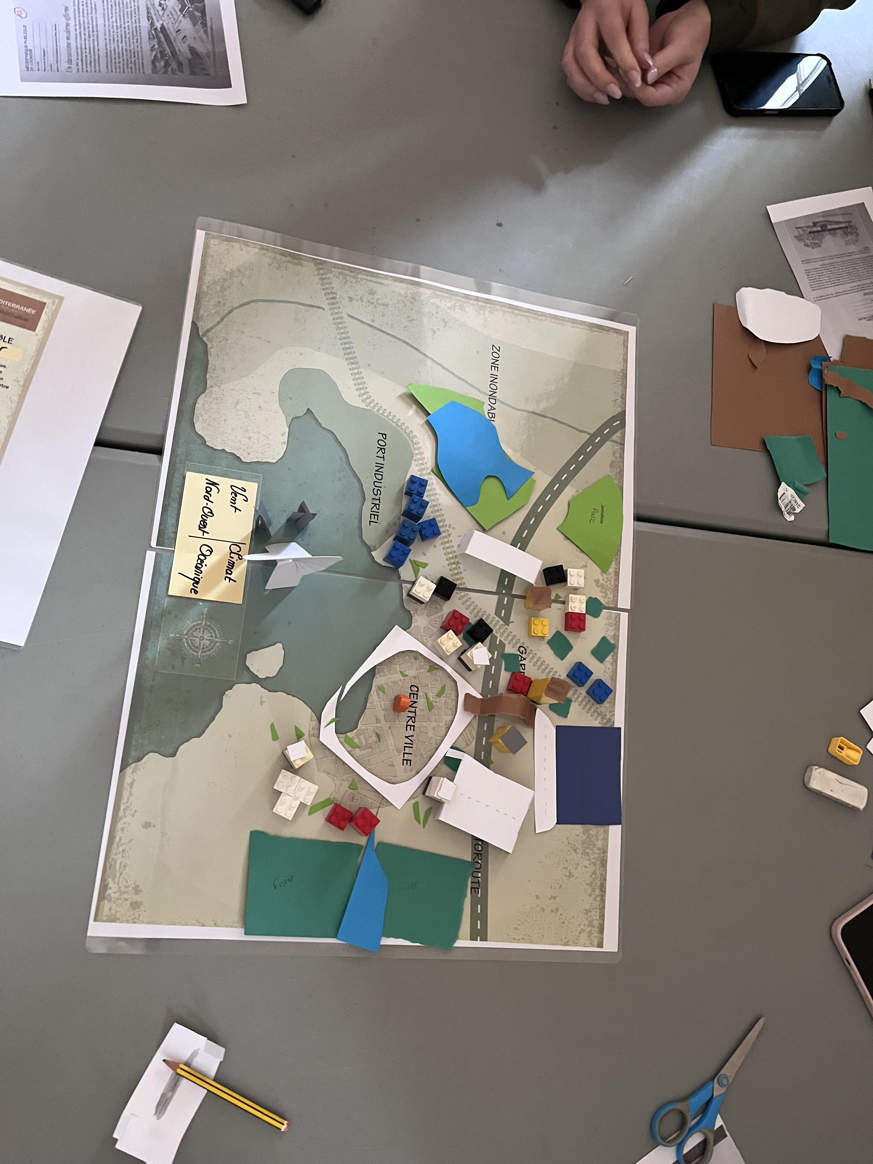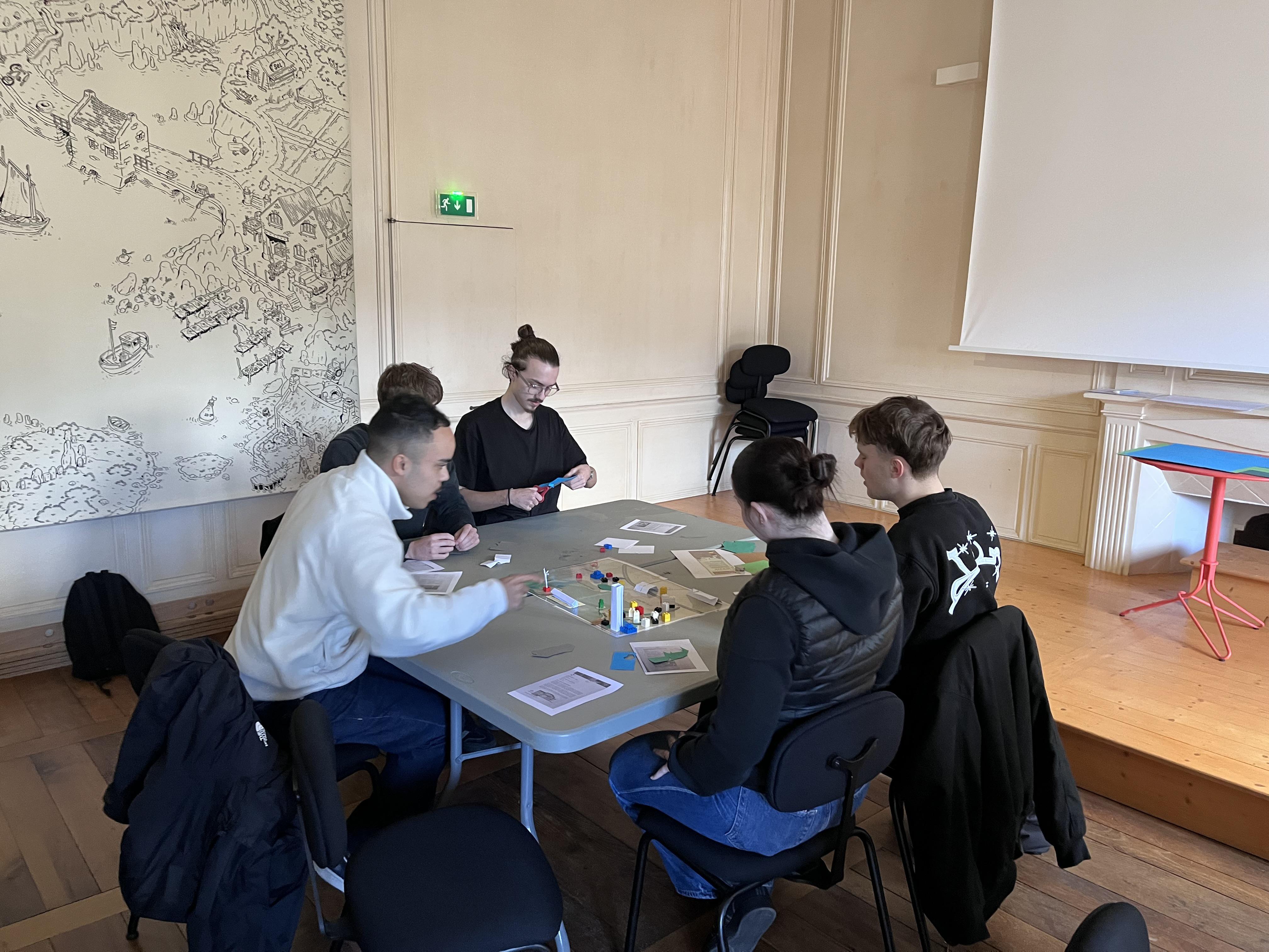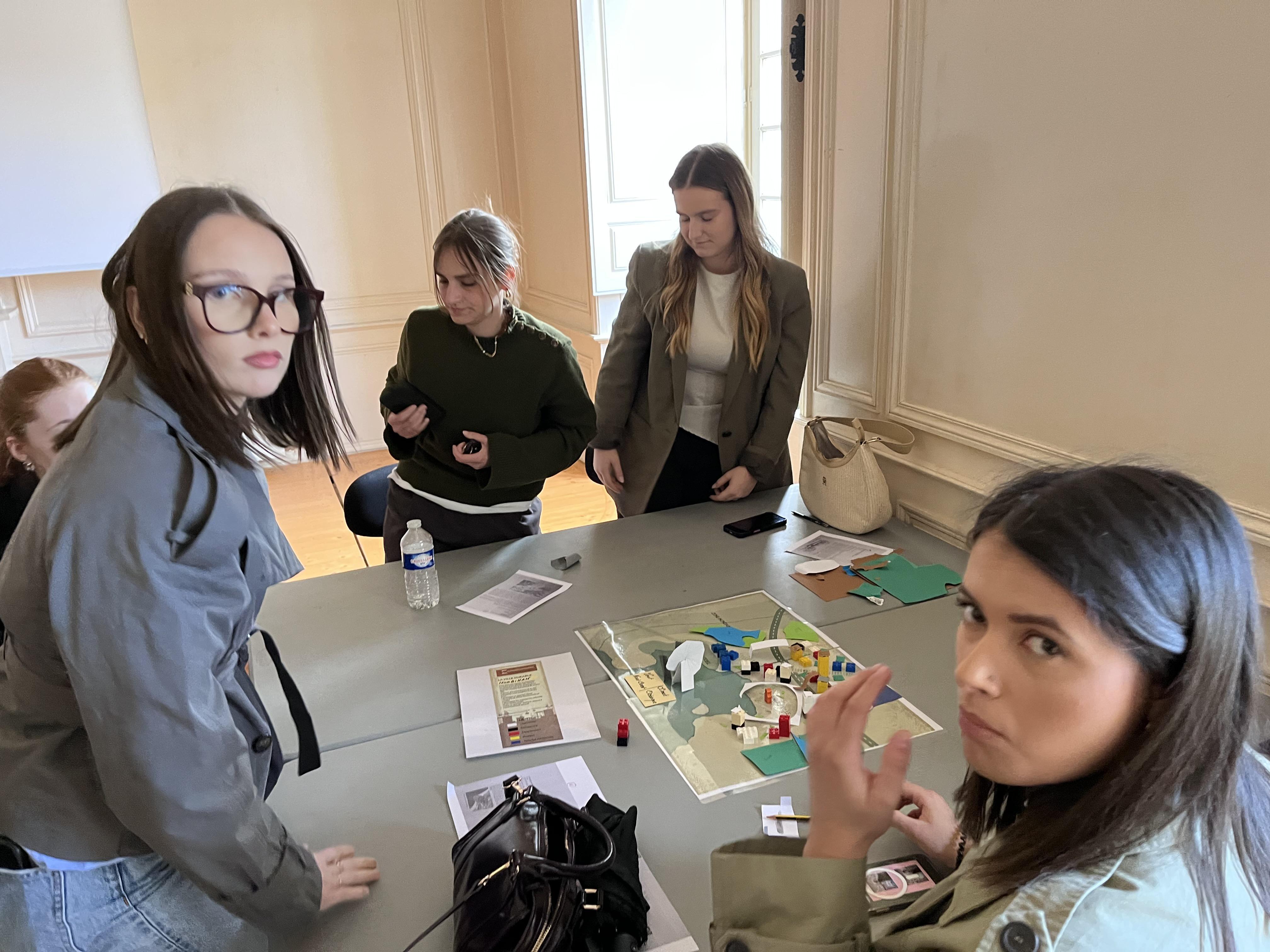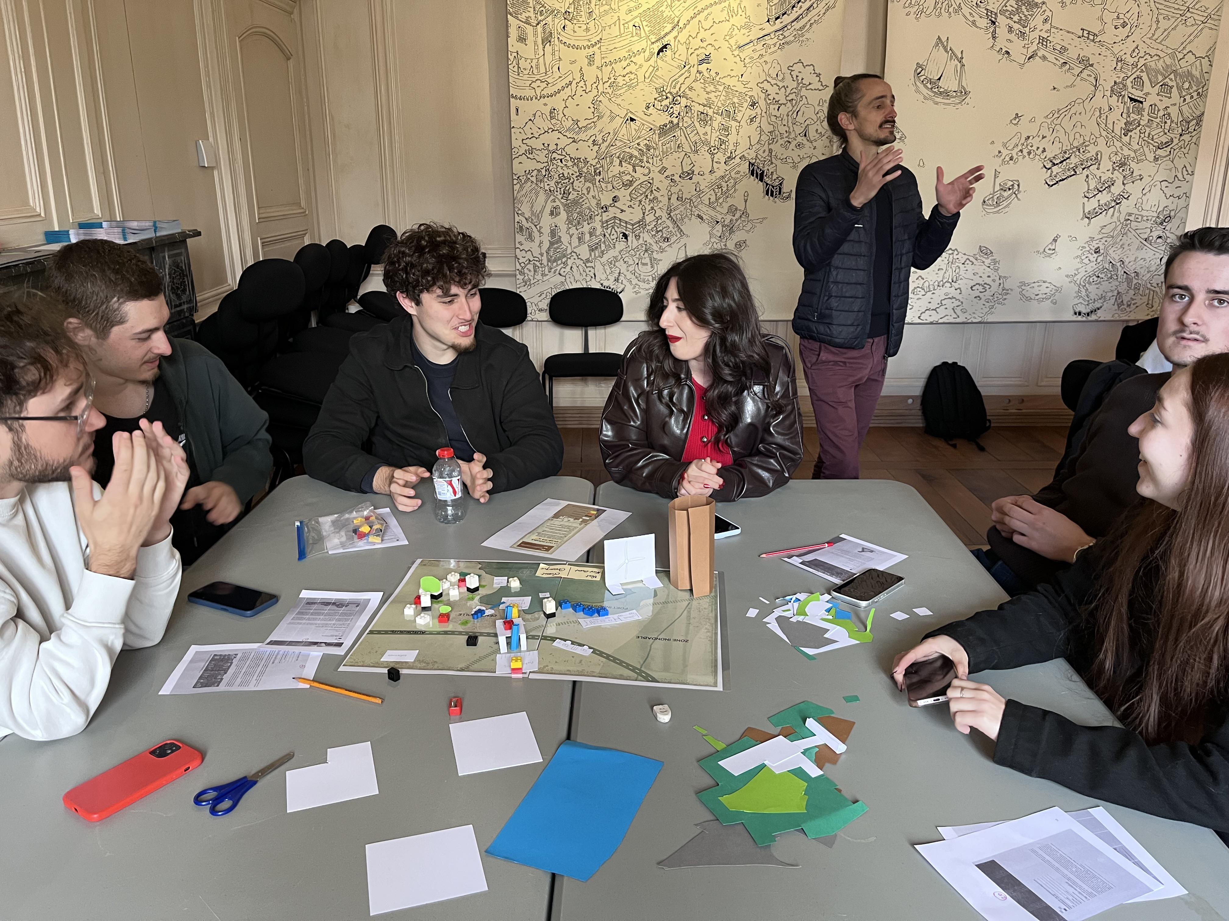 Les étudiants ont terminé la visite par un travail par groupes de 6 pour imaginer la ville de demain - "résiliente", moderne et accueillant de nouveaux habitants, services, industries, équipements et commerces.