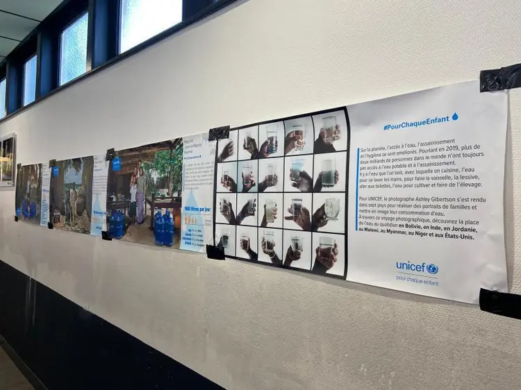 Le club UNICEF affiche actuellement dans le self de notre lycée une exposition de sensibilisation sur l’eau. Celle-ci nous présente les habitudes et le quotidien des habitants des quatre coins du monde, comme au Niger, aux Etats-Unis ou encore au Myanmar, à travers différentes photographies prises par Ashley Gilbertson. Par ces images, le photographe nous montre la consommation quotidienne d’eau de chaque famille avec la représentation de bidons d’eau. Ainsi, l’exposition nous pousse à ouvrir notre esprit sur les différents modes de vie des familles du monde entier et nous permet de pouvoir les comparer. A travers ces affiches, L’UNICEF nous introduit une de ses actions fondamentales, celle que chaque enfant puisse disposer de 20 litres d’eau par jour, car encore 30 % de la population mondiale n’a pas accès à l’eau potable à domicile.