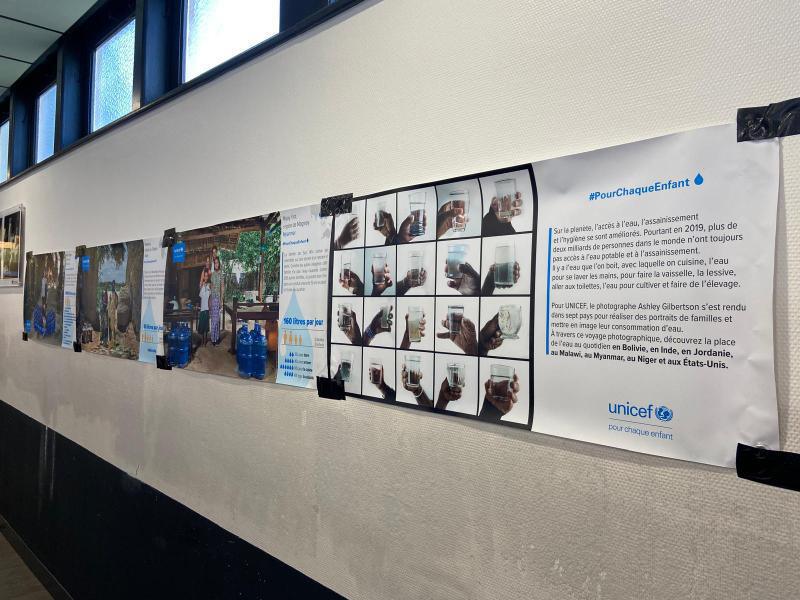 Le club UNICEF affiche actuellement dans le self de notre lycée une exposition de sensibilisation sur l’eau. Celle-ci nous présente les habitudes et le quotidien des habitants des quatre coins du monde, comme au Niger, aux Etats-Unis ou encore au Myanmar, à travers différentes photographies prises par Ashley Gilbertson. Par ces images, le photographe nous montre la consommation quotidienne d’eau de chaque famille avec la représentation de bidons d’eau. Ainsi, l’exposition nous pousse à ouvrir notre esprit sur les différents modes de vie des familles du monde entier et nous permet de pouvoir les comparer. A travers ces affiches, L’UNICEF nous introduit une de ses actions fondamentales, celle que chaque enfant puisse disposer de 20 litres d’eau par jour, car encore 30 % de la population mondiale n’a pas accès à l’eau potable à domicile.